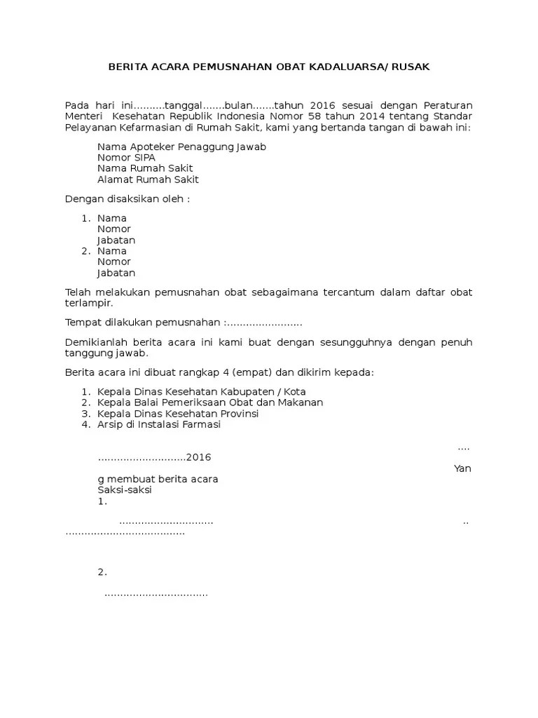 Berikut ini adalah contoh berita acara serah terima pekerjaan. Simak contoh surat berita acara serah terima pekerjaan proyek terlengkap. Tentang serah terima sementara pekerjaan dalam buku 2 . Berita acara hasil kunjungan lapangan/pemeriksaan hasil pekerjaan dari ketua . Pihak kedua berdasarkan pasal 5 ayat (1) surat perjanjian pelaksanaan penelitian dan. Pada instansi namun beberapa perusahan tidak menggunakan kop surat);. Jika sebuah pihak menyerahkan pekerjaan kepada pihak lain, maka biasanya selalu menggunakan surat . Dimana bahan tersebut masih merupakan bahan baku, sedangkan perhitungan bobot fisiknya sendiri dihitung terhadap satuan pekerjaan pasangan jadi yang sudah . Berita acara merupakan salah satu dokumen penting dalam sebuah kegiatan diperusahaan, misalnya saat melakukan tanda tangan persetujuan kerjasama, melakukan. Berdasarkan surat perjanjian penugasan nomor :…………………, yang bertanda tangan di bawah ini: Dengan hormat, berdasarkan surat perjanjian pelaksanaan pekerjaan nomor: Surat berita acara penyelesaian pekerjaan. Pengertian berita acara adalah naskah dinas atau surat yang di dalamnya memuat pernyataan pengesahan .